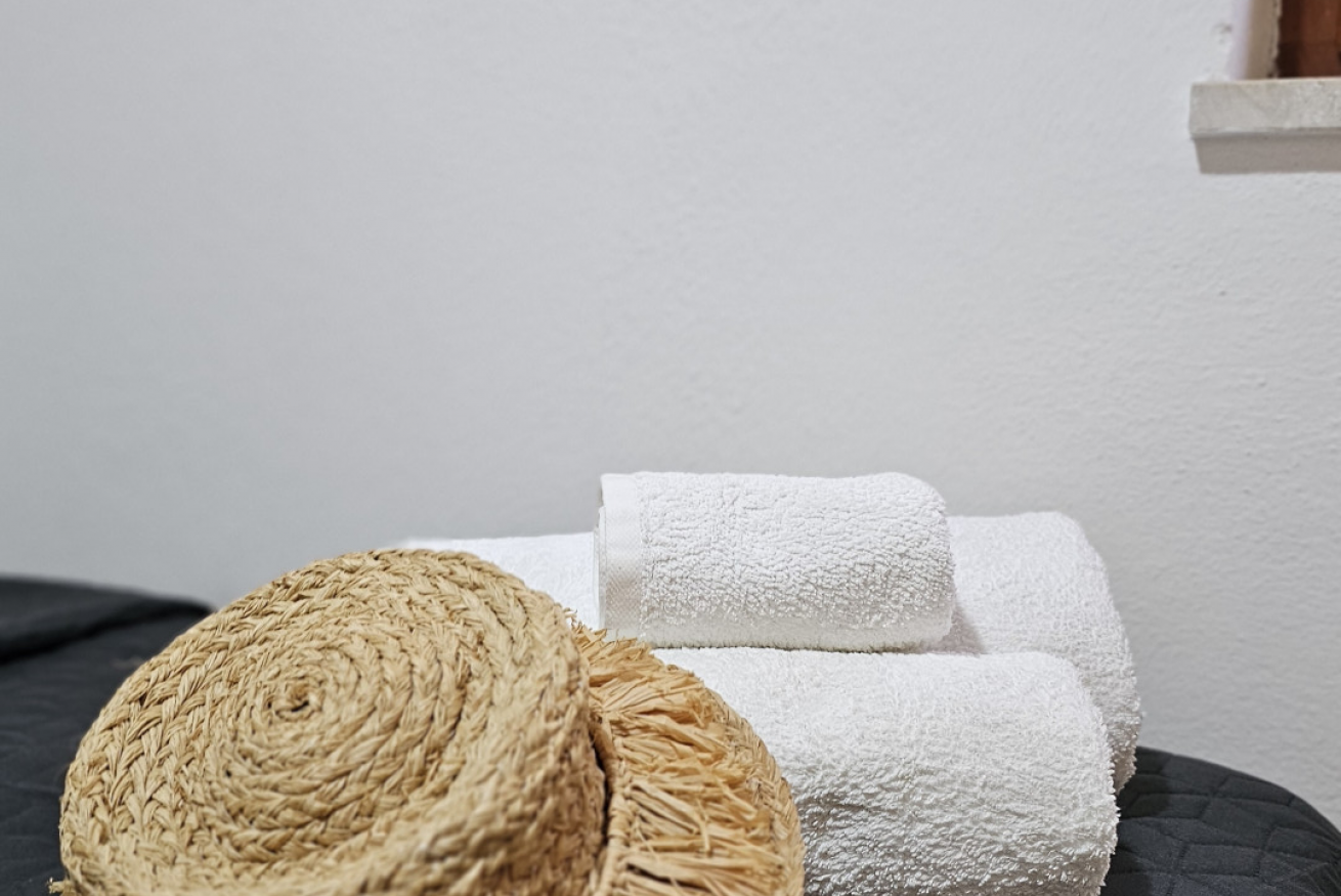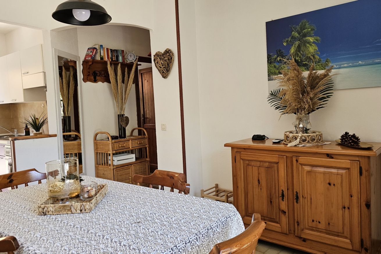 A small corner of paradise and relaxation. 2 bedrooms, one with a double bed and one with two single beds, living room with sofa, kitchen and bathroom. It is equipped with air conditioning in all rooms, wi-fi connection, coffee machine, microwave, gas cooker with oven, TV, fridge, washing machine, mosquito nets and all the comforts for a pleasant stay. The house also has large outdoor spaces for exclusive use with tables, chairs, hammocks.